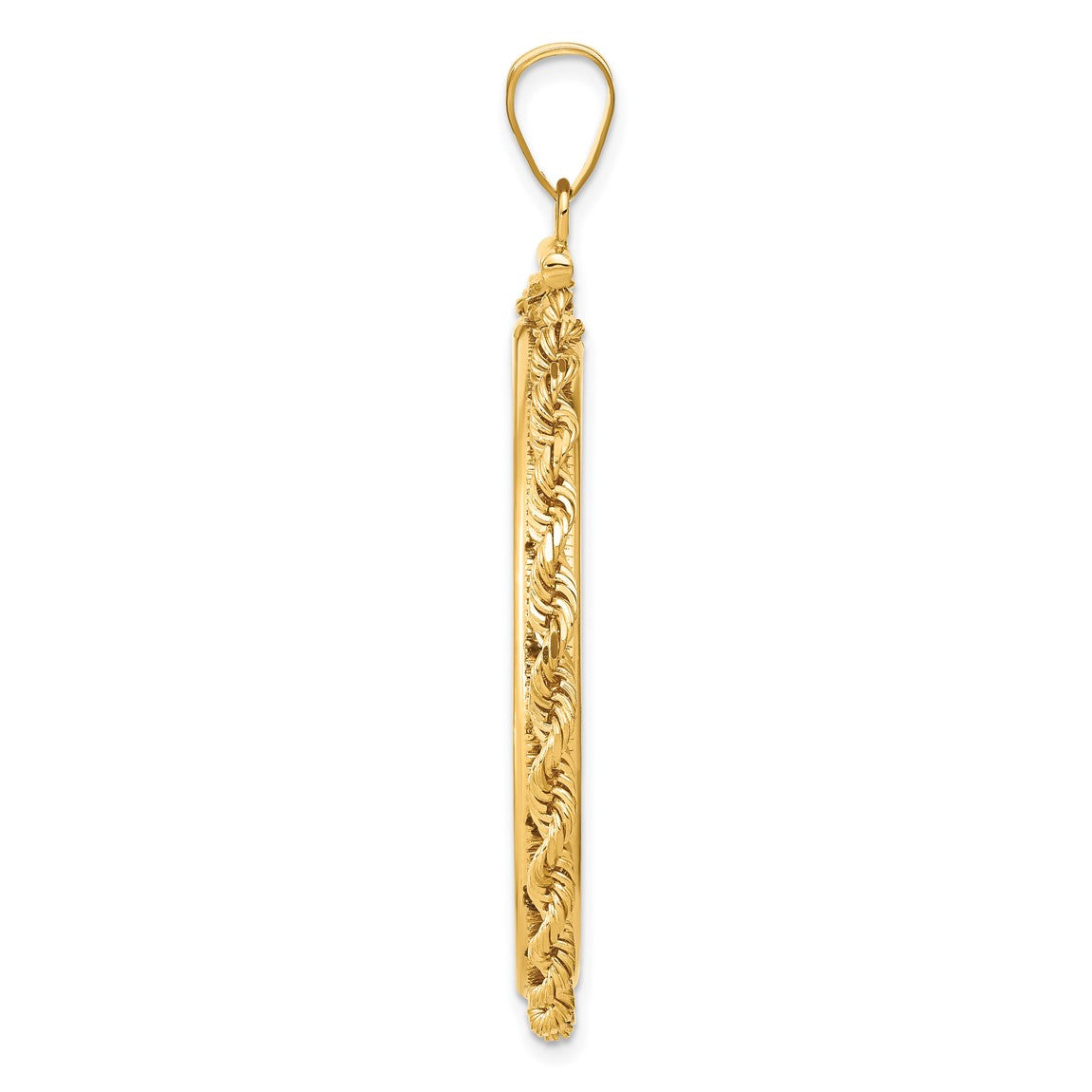 14k Yellow Gold 37mm 3mm Rope Screw Top Coin Bezel Pendant - Fits 50 Pesos and Centenario