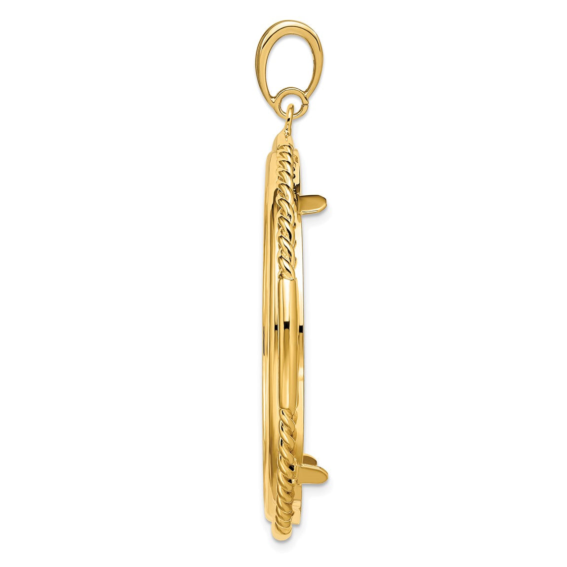 14k Yellow Gold 37mm Quadruple Twist & Bright Prong Coin Bezel Pendant - Fits 50 Pesos and Centenario