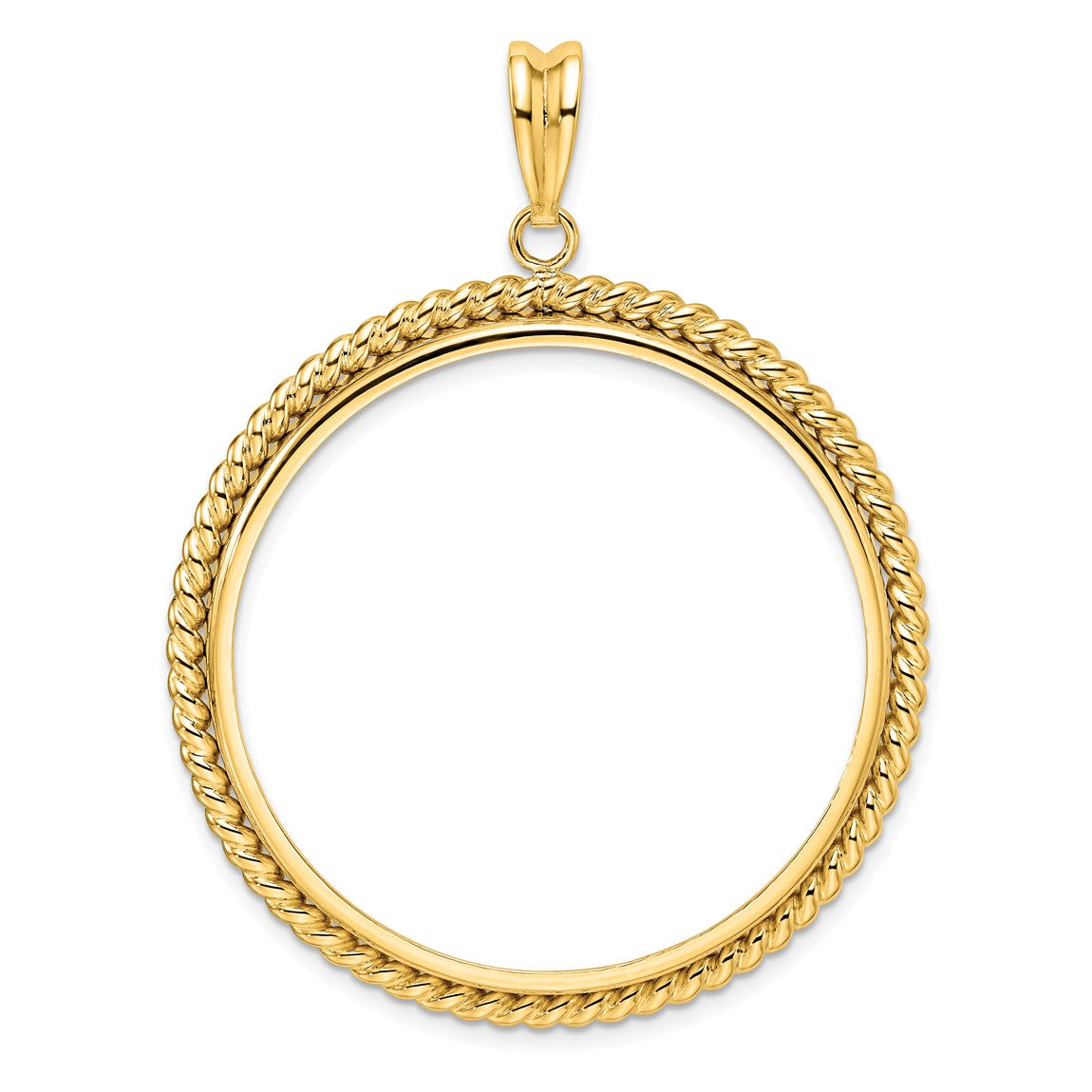 14k Yellow Gold 37mm Twisted Wire Prong Coin Bezel Pendant - Fits 50 Pesos and Centenario