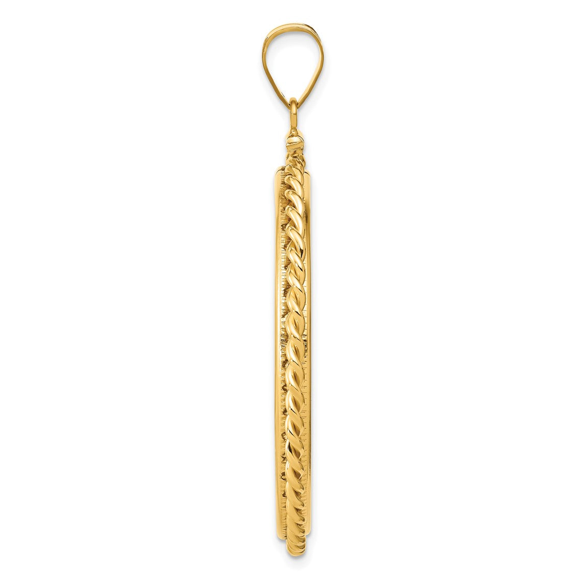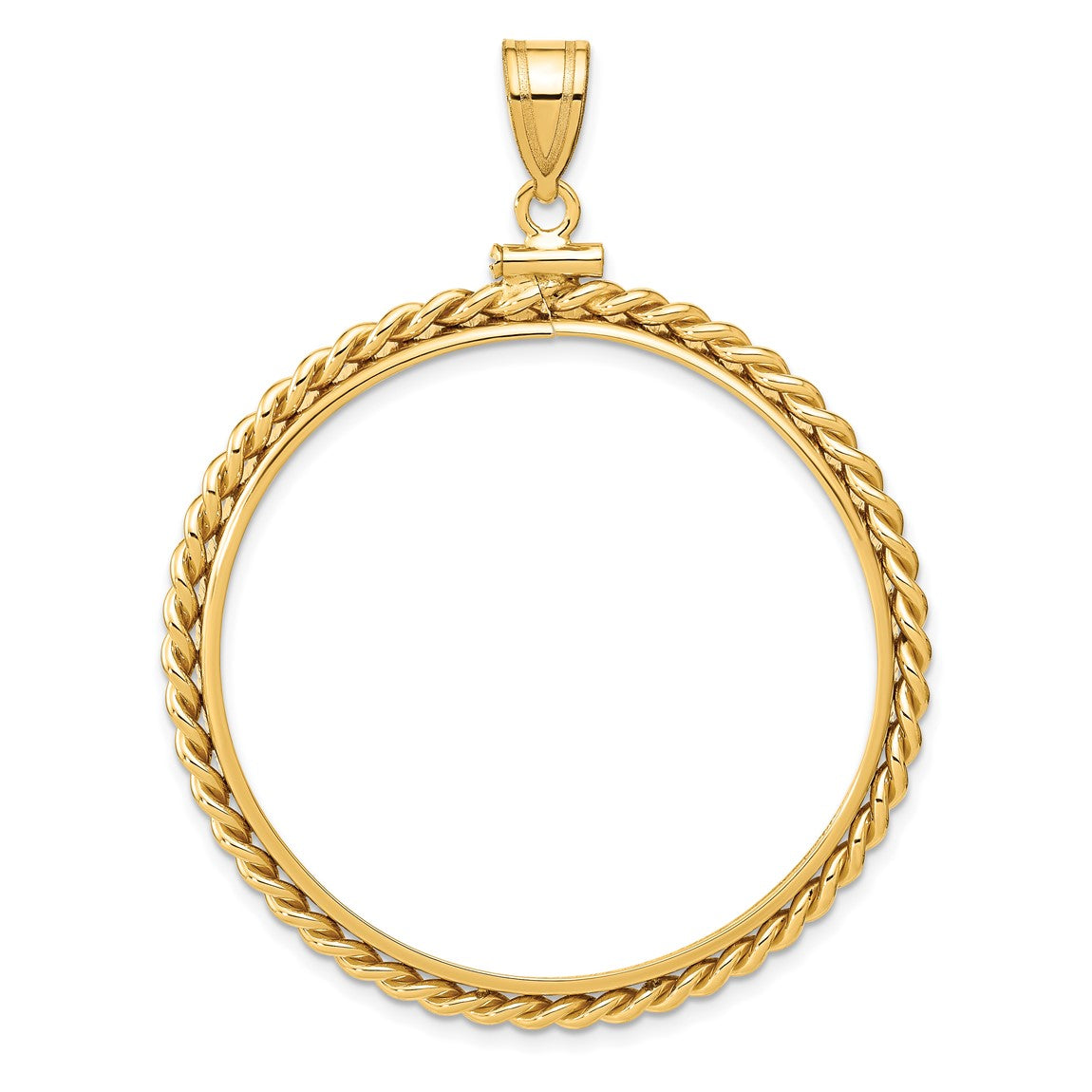 14k Yellow Gold 37mm Twisted Wire Screw Top Coin Bezel Pendant - Fits 50 Pesos and Centenario