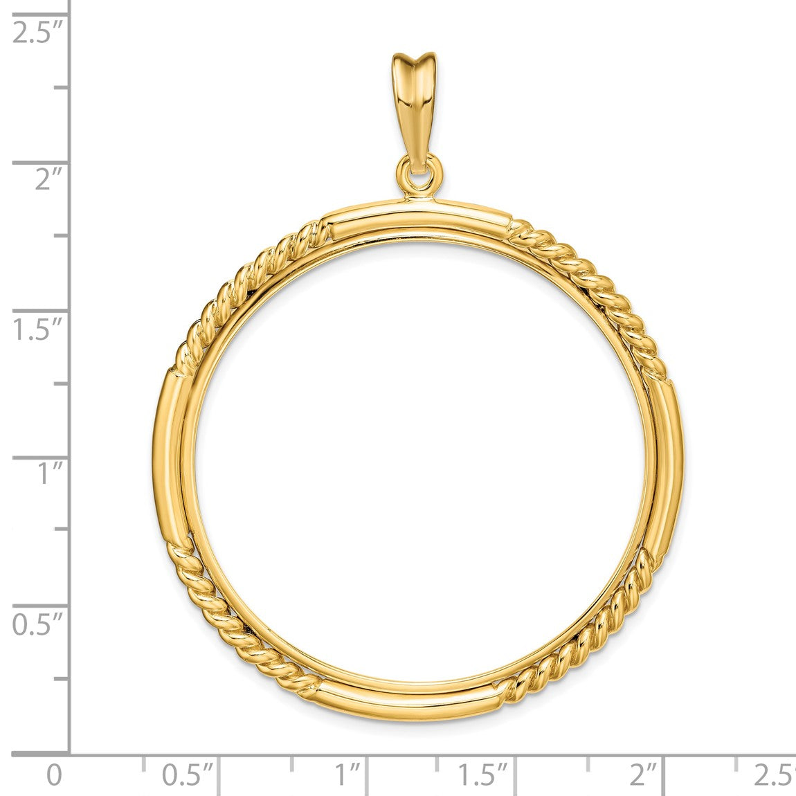 14k Yellow Gold 39.5mm Quadruple Twist & Bright Prong Coin Bezel Pendant - Fits 4 Ducat