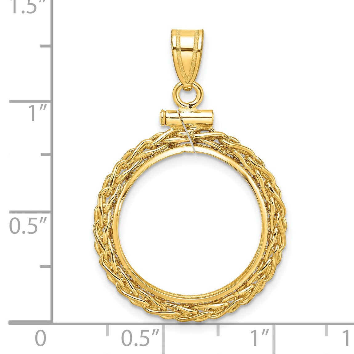 14k Yellow Gold 3mm Wheat Chain Screw Top 18mm Coin Bezel Pendant - Fits 1/10 oz Cat, 1/10 oz Panda, and US Dime