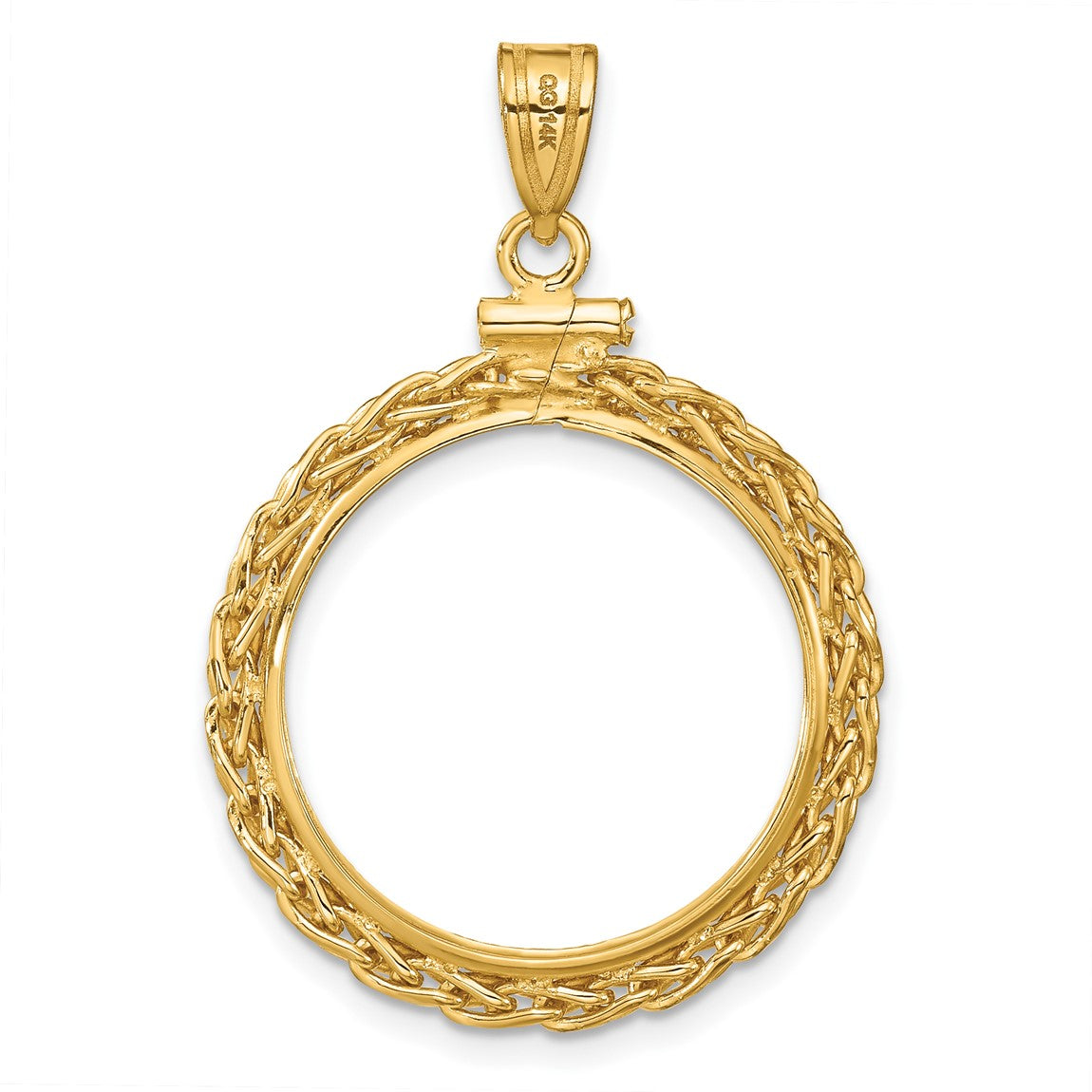 14k Yellow Gold 3mm Wheat Chain Screw Top 21.6mm Coin Bezel Pendant - Fits US $5 Bald Eagle, US $5 Congressional, US $5 Liberty, and Other Coins