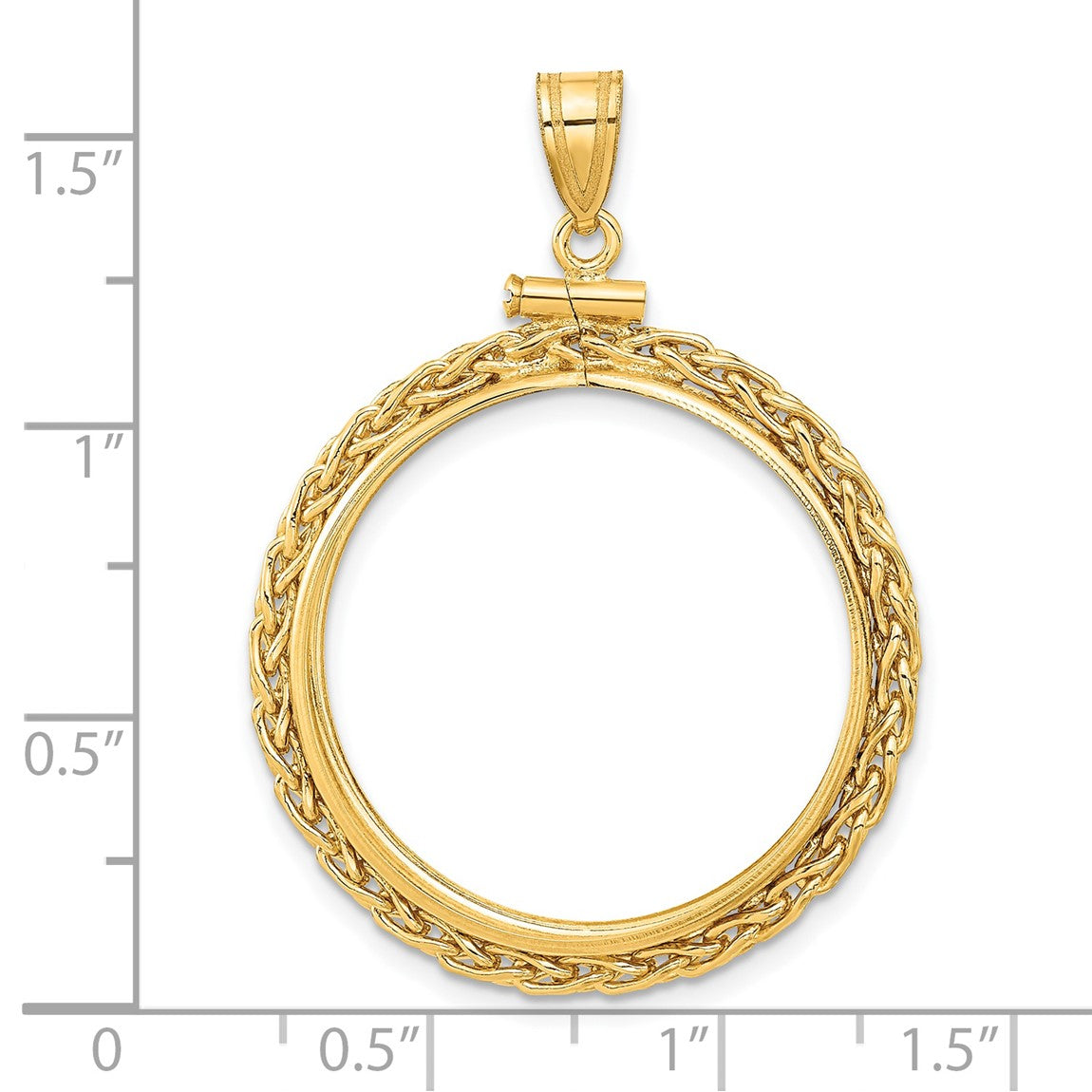 14k Yellow Gold 3mm Wheat Chain Screw Top 25.0mm Coin Bezel Pendant - Fits 1/2 oz Maple Leaf and Other Coins