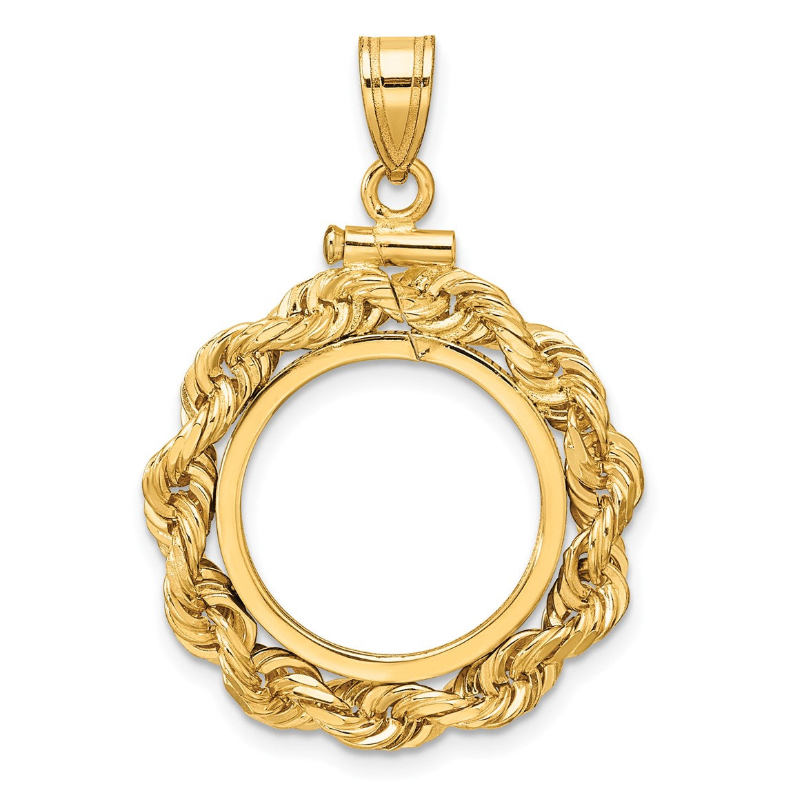 14k Yellow Gold 4mm Rope 16.5mm Screw Top Coin Bezel Pendant - Fits 1/10 oz American Eagle and 1/10 oz Krugerrand