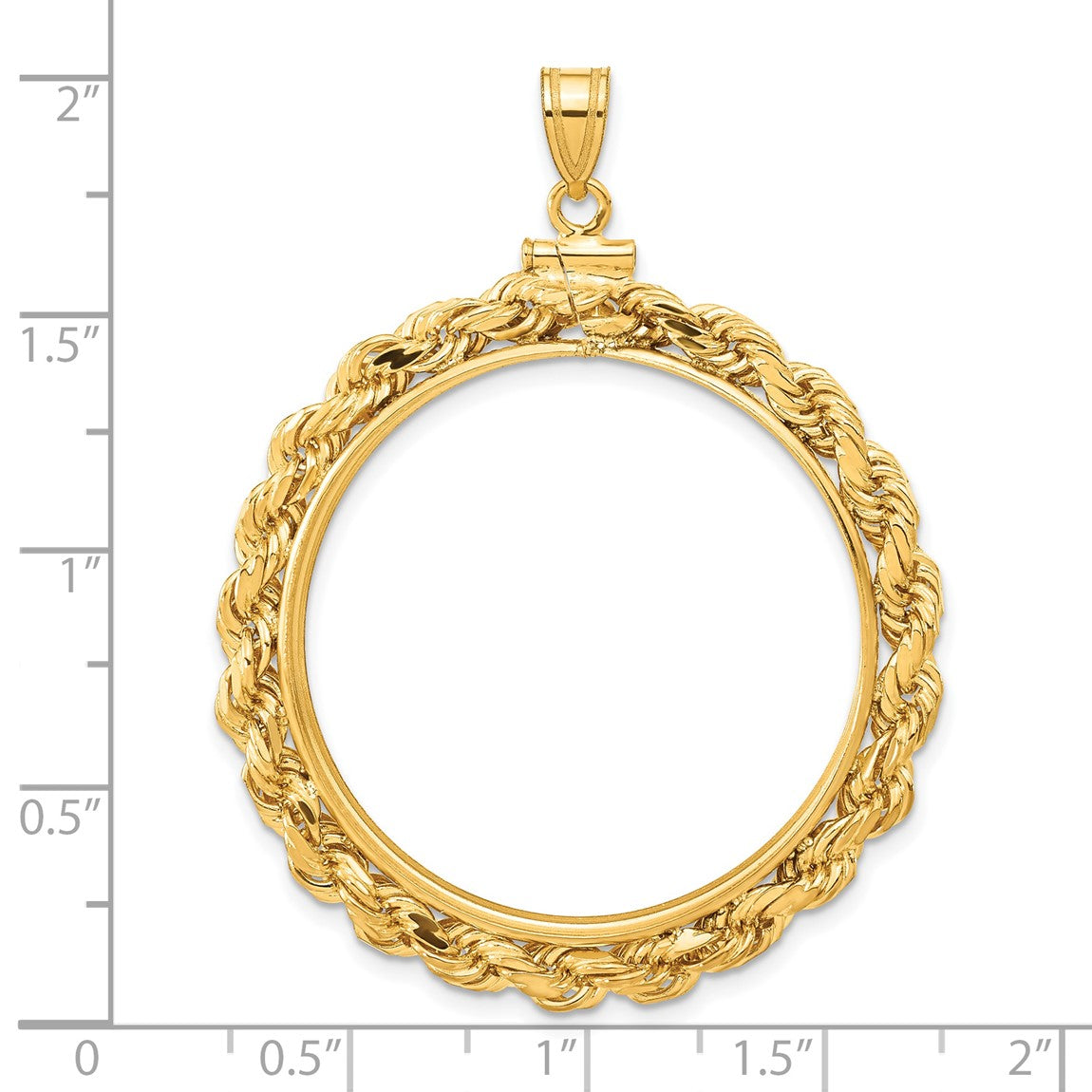 14k Yellow Gold 4mm Rope 32mm Screw Top Coin Bezel Pendant - Fits 1 oz Australian Nugget, 1 oz Kangaroo, 1 oz Panda, and Other Coins