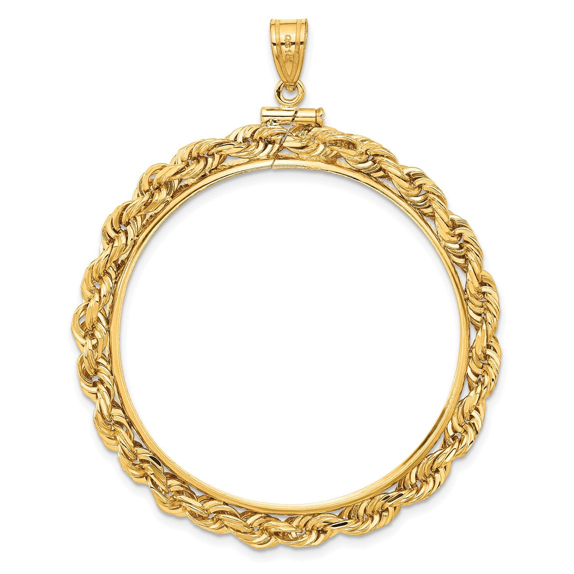 14k Yellow Gold 4mm Rope 37mm Screw Top Coin Bezel Pendant - Fits 50 Pesos and Centenario