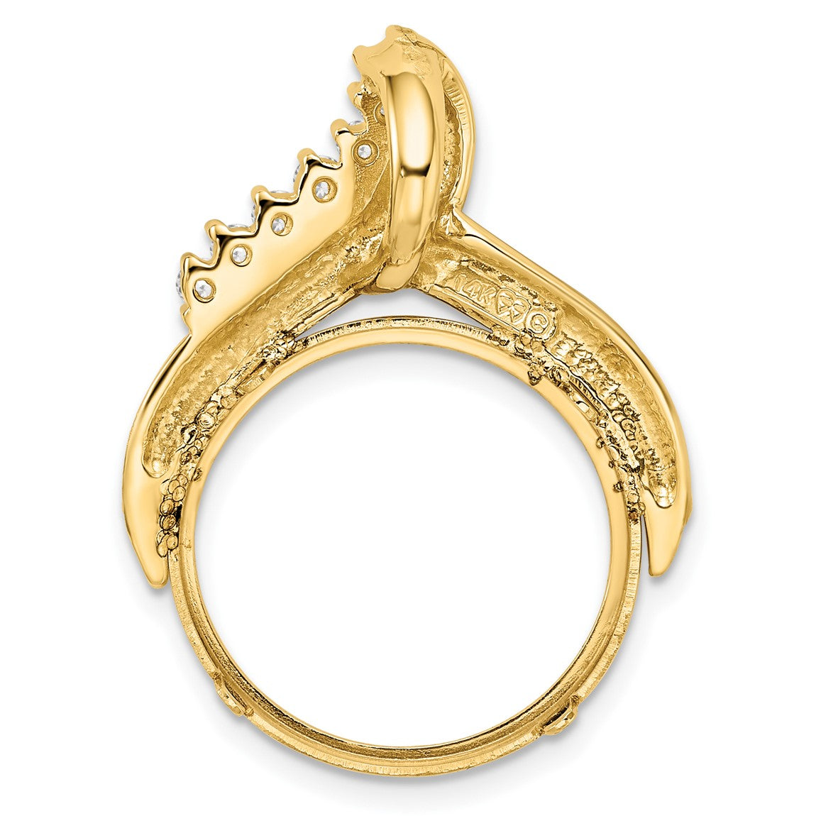 14k Yellow Gold AA Diamond Teardrop 18mm Prong Coin Bezel Chain Slide Pendant - Fits 1/10 oz Cat
