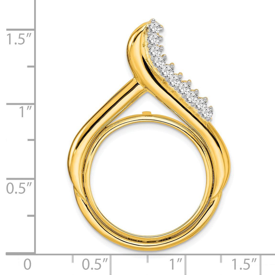 14k Yellow Gold AAA Diamond Teardrop 21.6mm Prong Coin Bezel Chain Slide Pendant - Fits US $5 Bald Eagle and US $5 Congressional