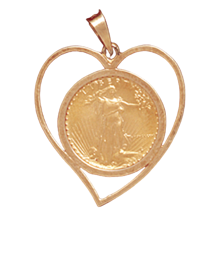 14K Yellow Gold Open Hearth  Pendant Bezel (Coin not included). Will hold a 16.5 mm coin.