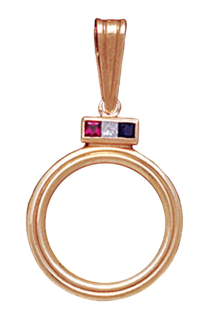 14K Yellow Gold  Ruby / Sapphire / Diamond  Pendant Bezel (Coin not included). Will hold a 16.5 mm coin.