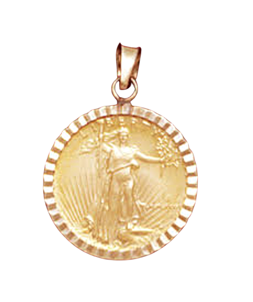 14K Yellow Gold DIAMOND CUT DIE STRUCK BEZEL Pendant (Coin not included). Will hold a 16.5 mm coin.