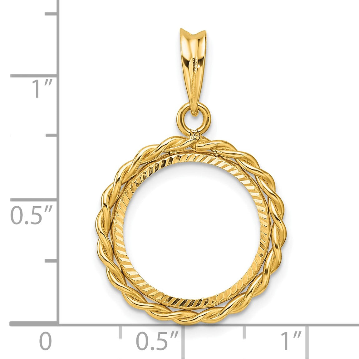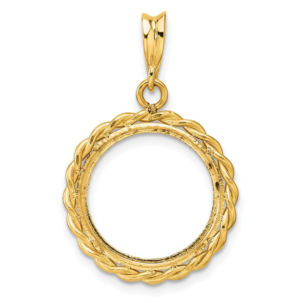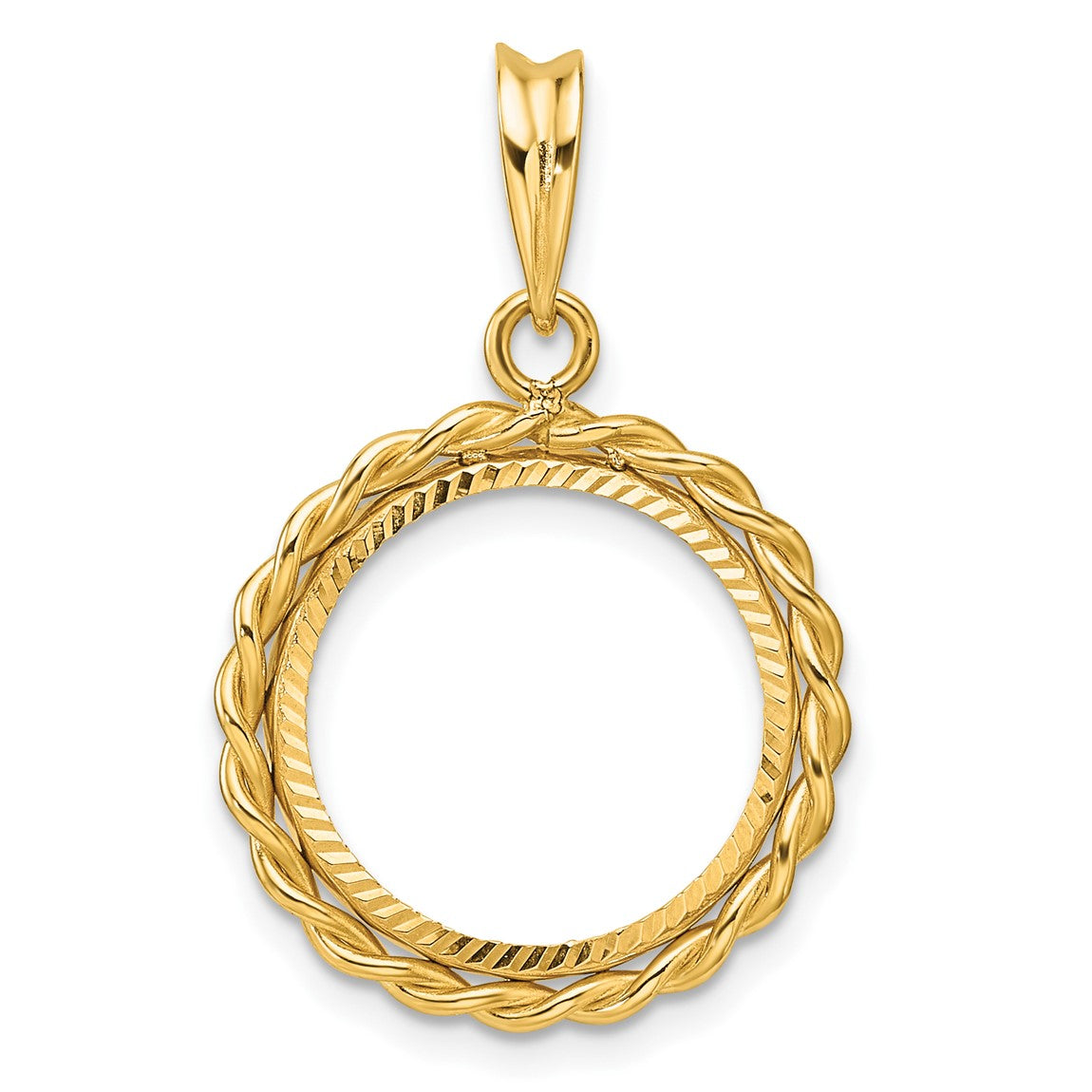14k Yellow Gold Diamond-cut with Twisted Wire 15.0mm Prong Coin Bezel Pendant - Fits US $1 Type 2