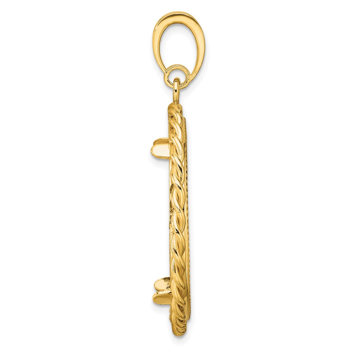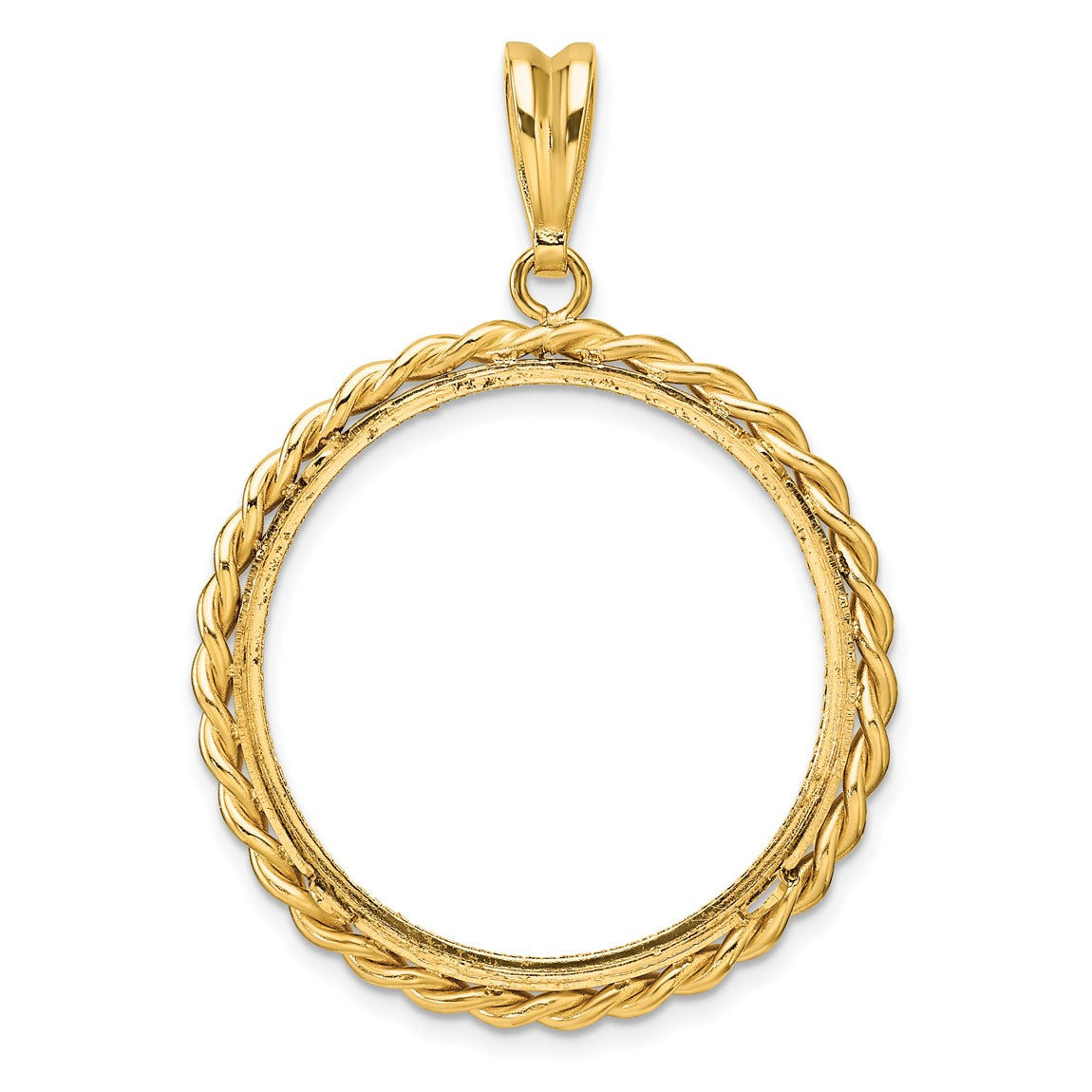 14k Yellow Gold Diamond-cut with Twisted Wire 27.0mm Prong Coin Bezel Pendant - Fits 1/2 oz American Eagle, US $10 Liberty, and Other Coins