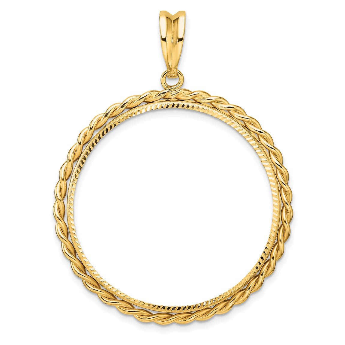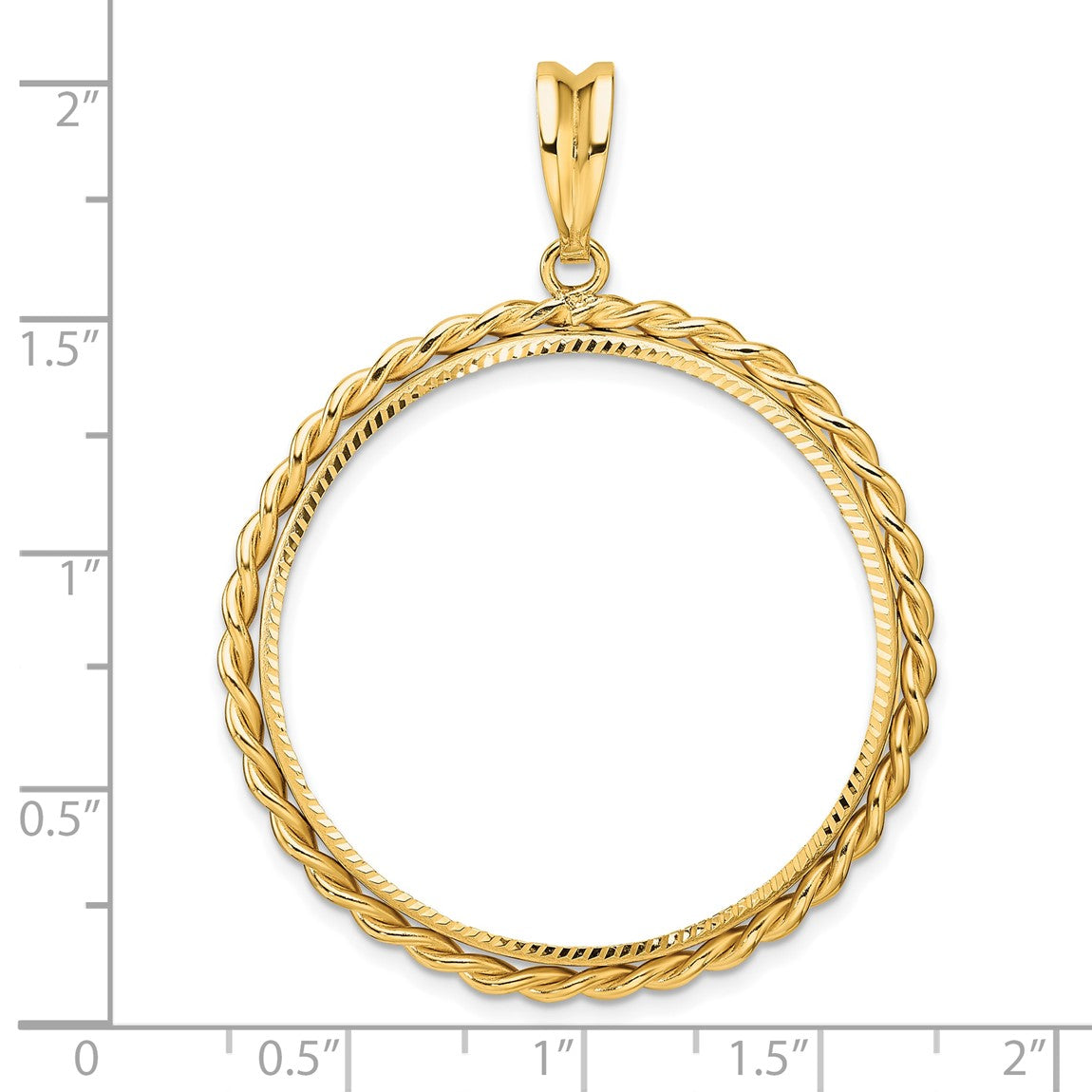 14k Yellow Gold Diamond-cut with Twisted Wire 32.7mm Prong Coin Bezel Pendant - Fits 1 oz American Eagle, 1 oz Cat, and 1 oz Krugerrand