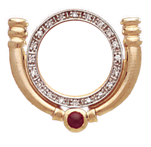 14K Yellow Gold DIAMOND / RUBY  SLIDE BEZEL Pendant (Coin not included). Will hold a 16.5 mm coin.