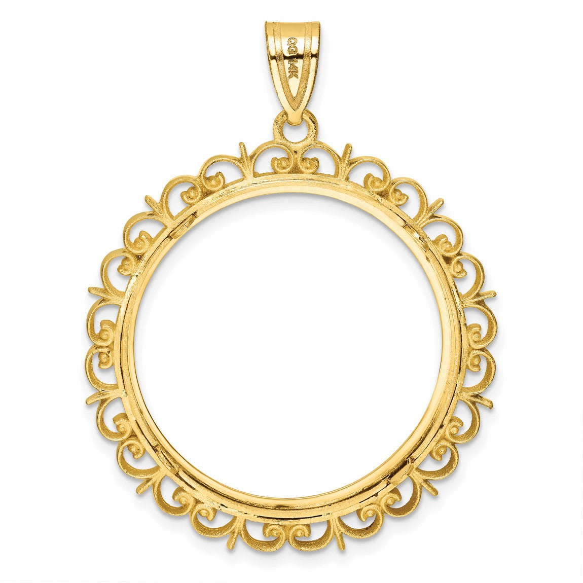 14k Yellow Gold Fancy 27mm Prong Coin Bezel Pendant - Fits 1/2 oz American Eagle, US $10 Liberty, and Other Coins