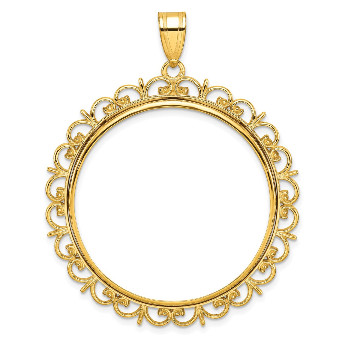 14k Yellow Gold Fancy 32.7mm Prong Coin Bezel Pendant - Fits 1 oz American Eagle, 1 oz Cat, and 1 oz Krugerrand