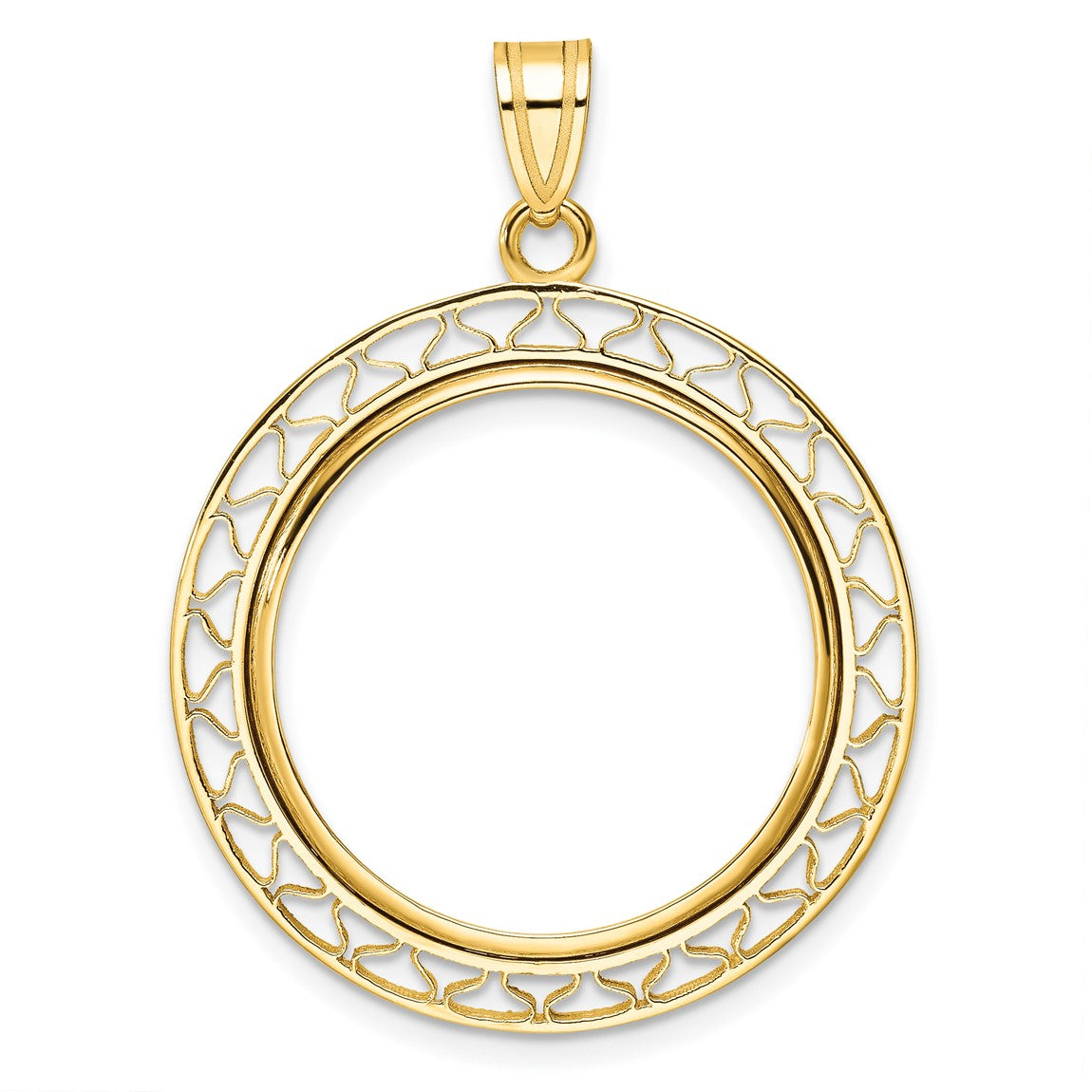 14k Yellow Gold Fancy Wire Polished 22mm Prong Coin Bezel Pendant - Fits 1/4 oz American Eagle and Other Coins