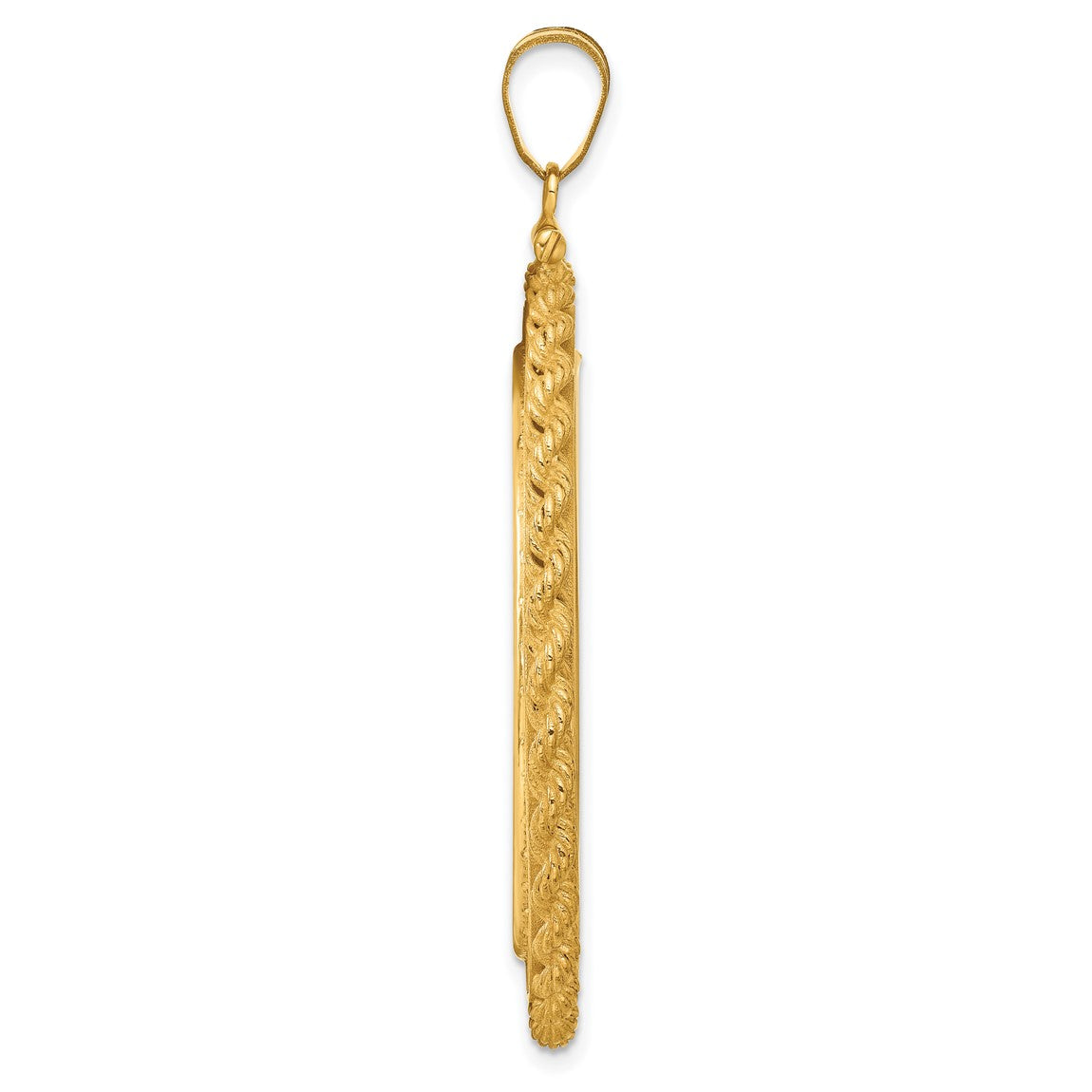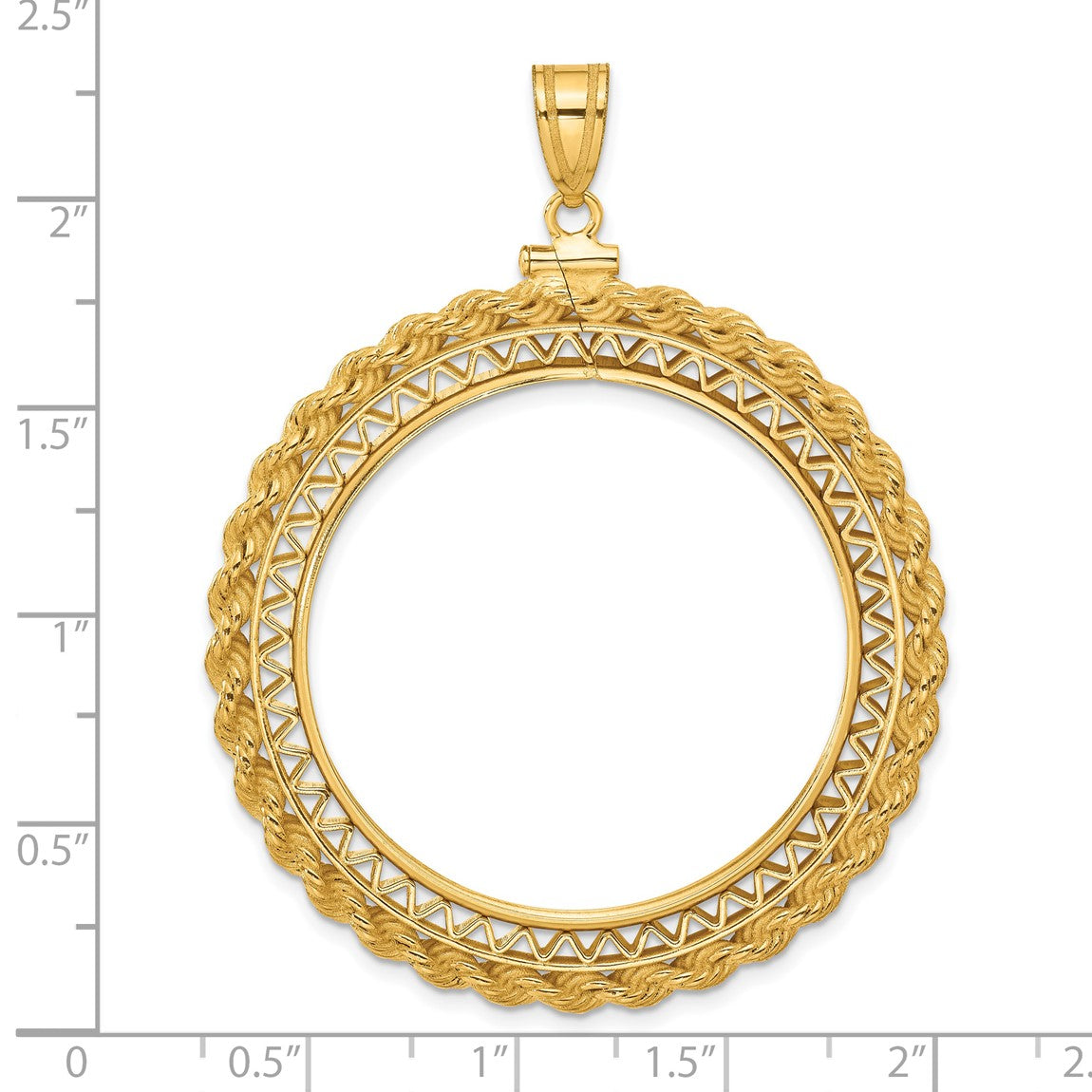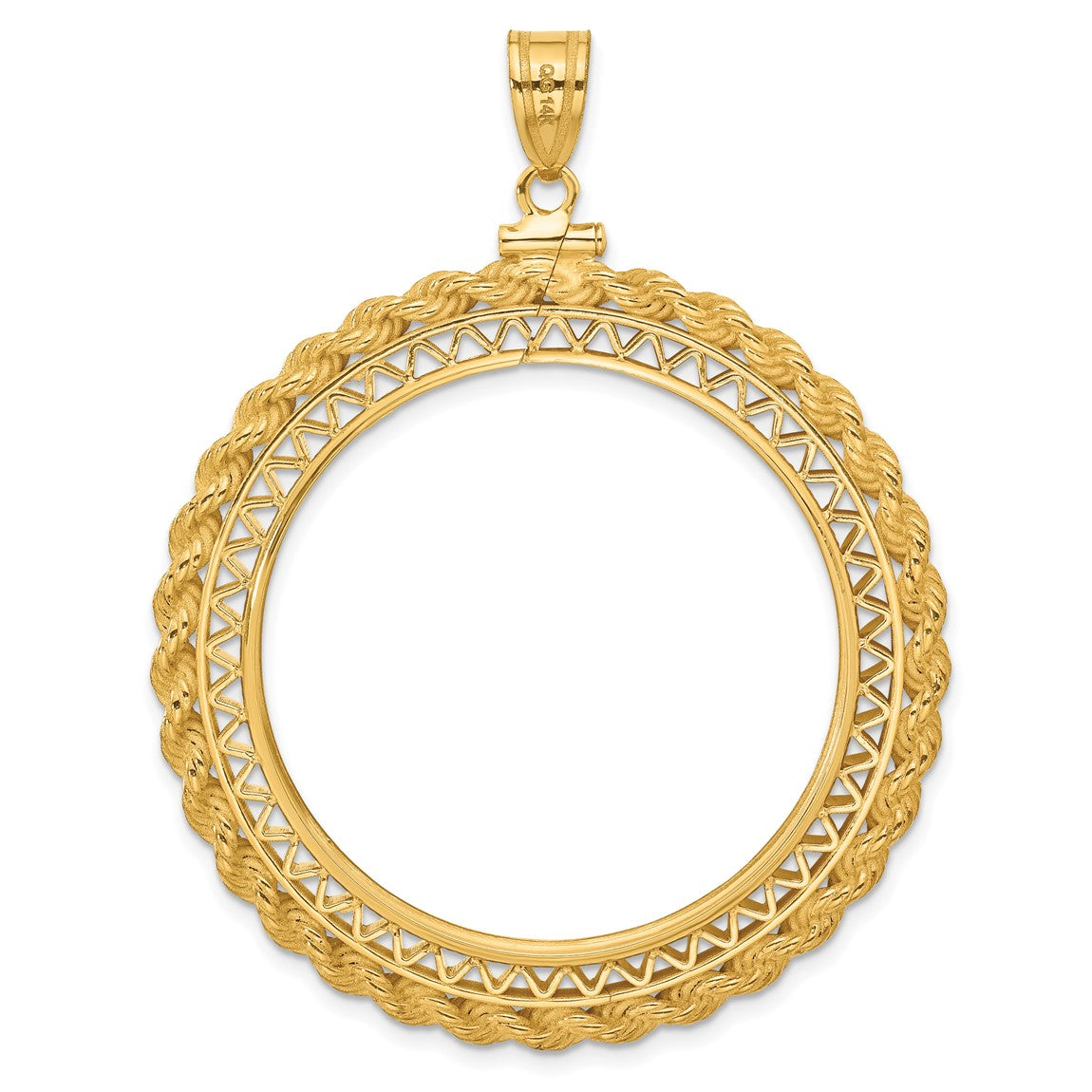 14k Yellow Gold Filigree w/ Rope Screw Top 34.2mm Coin Bezel Pendant - Fits US $20 Liberty and US $20 St. Gaudens