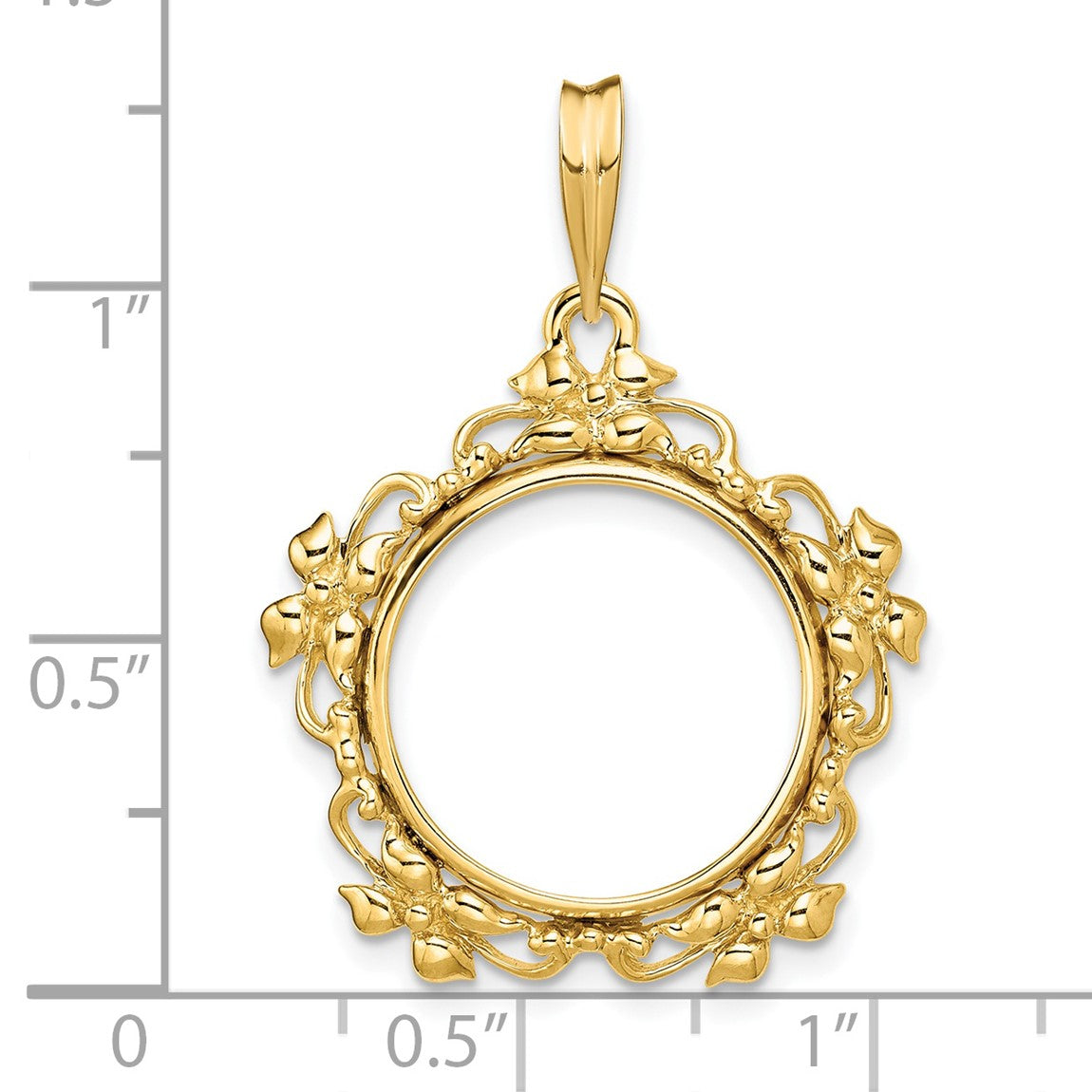 14k Yellow Gold Flower Blossom 16.5mm Prong Coin Bezel Pendant - Fits 1/10 oz American Eagle and 1/10 oz Krugerrand