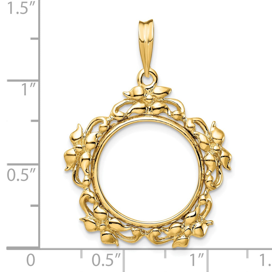 14k Yellow Gold Flower Blossom 16mm Prong Coin Bezel Pendant - Fits 1/10 oz Maple Leaf, Maple Leaf, and Other Coins