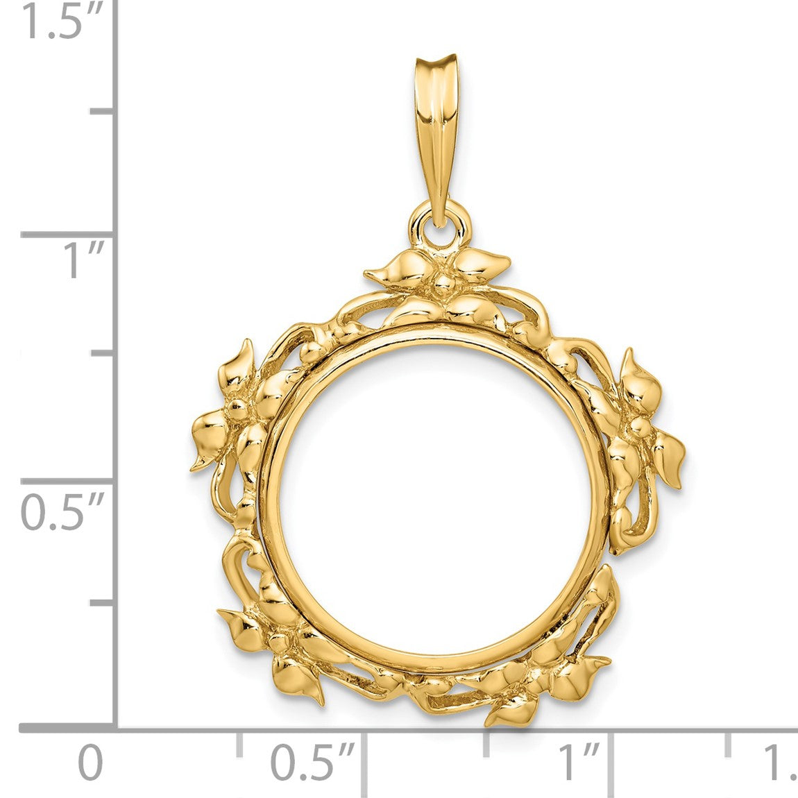 14k Yellow Gold Flower Blossom 17.8mm Prong Coin Bezel Pendant - Fits US $2.50 Liberty and Other Coins
