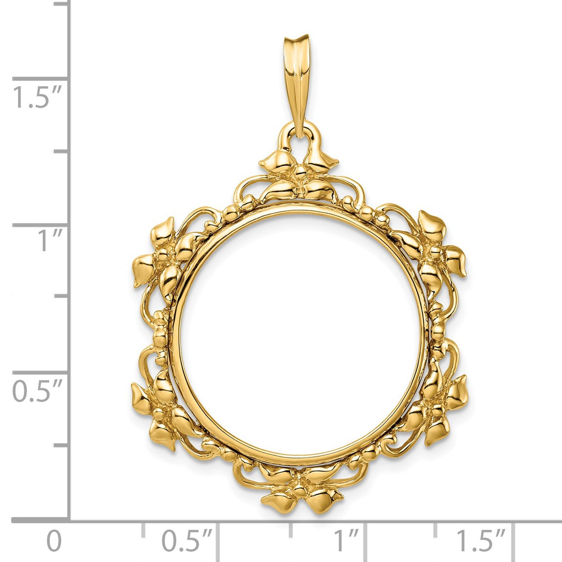14k Yellow Gold Flower Blossom 21.6mm Prong Coin Bezel Pendant - Fits US $5 Bald Eagle and US $5 Congressional