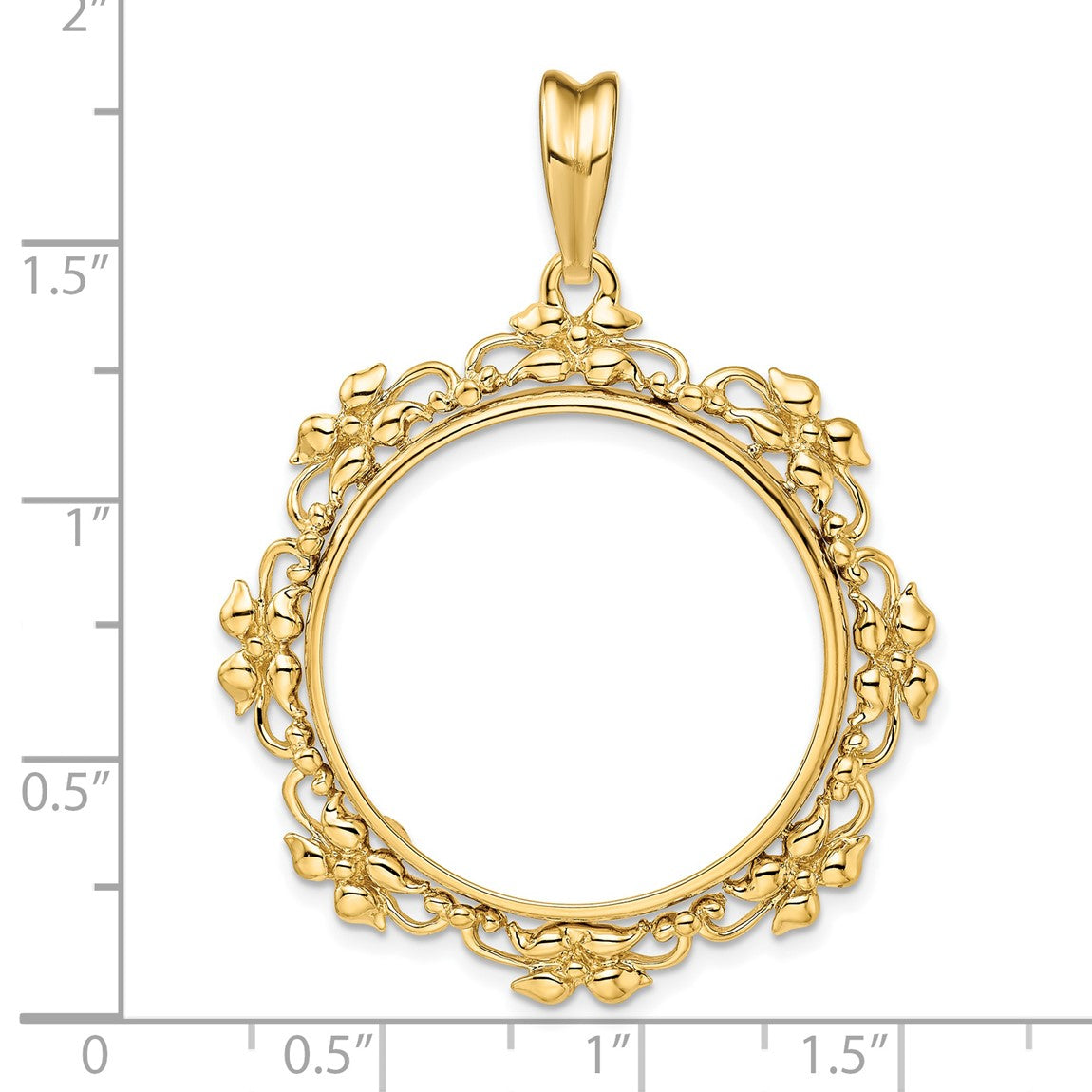 14k Yellow Gold Flower Blossom 27mm Prong Coin Bezel Pendant - Fits 1/2 oz American Eagle, US $10 Liberty, and Other Coins