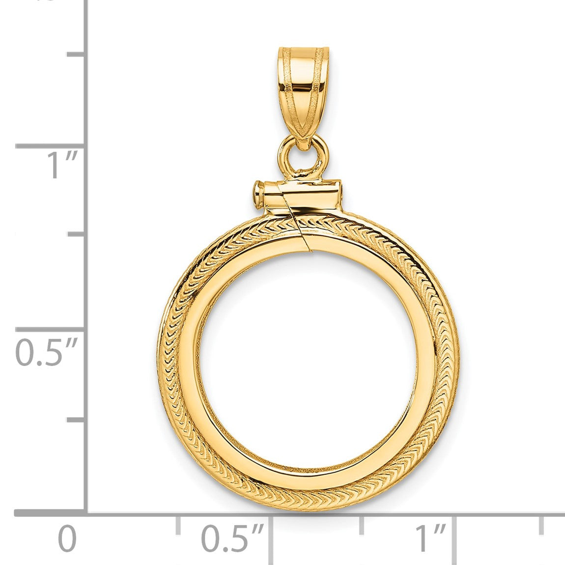 14k Yellow Gold Foxtail Chain Screw Top 16.5mm Coin Bezel Pendant - Fits 1/10 oz American Eagle and 1/10 oz Krugerrand