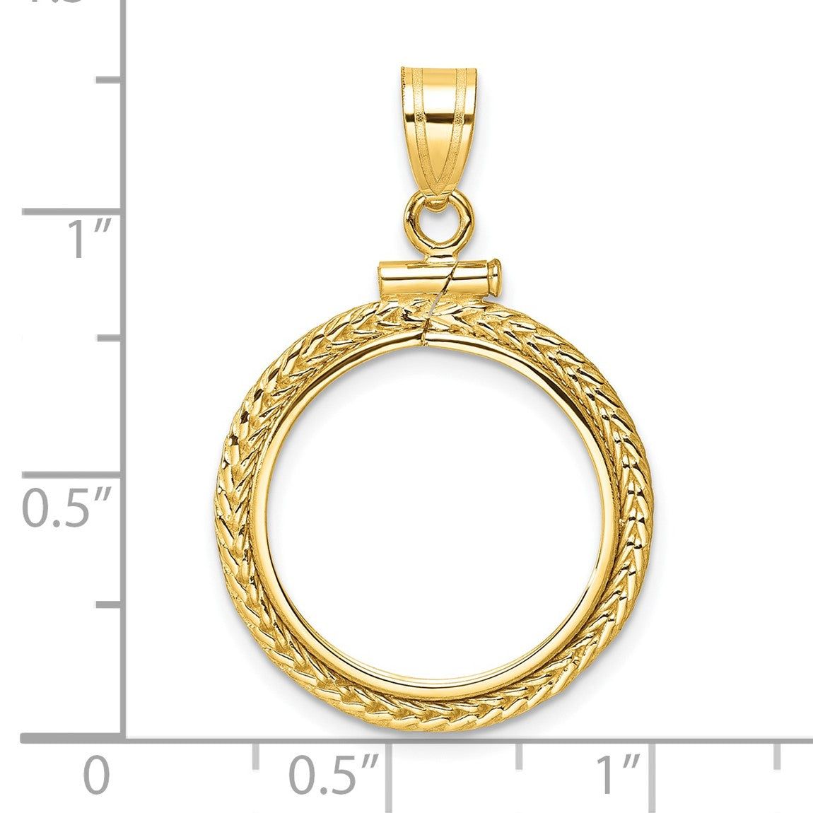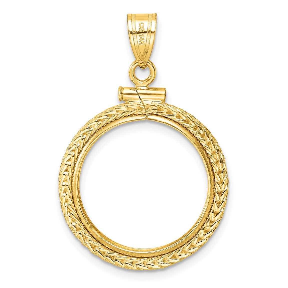 14k Yellow Gold Foxtail Chain Screw Top 17.8mm Coin Bezel Pendant - Fits US $2.50 Liberty and Other Coins