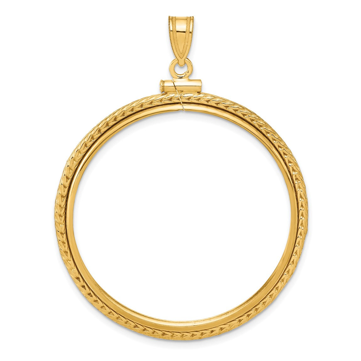 14k Yellow Gold Foxtail Chain Screw Top 34.2mm Coin Bezel Pendant - Fits US $20 Liberty and US $20 St. Gaudens