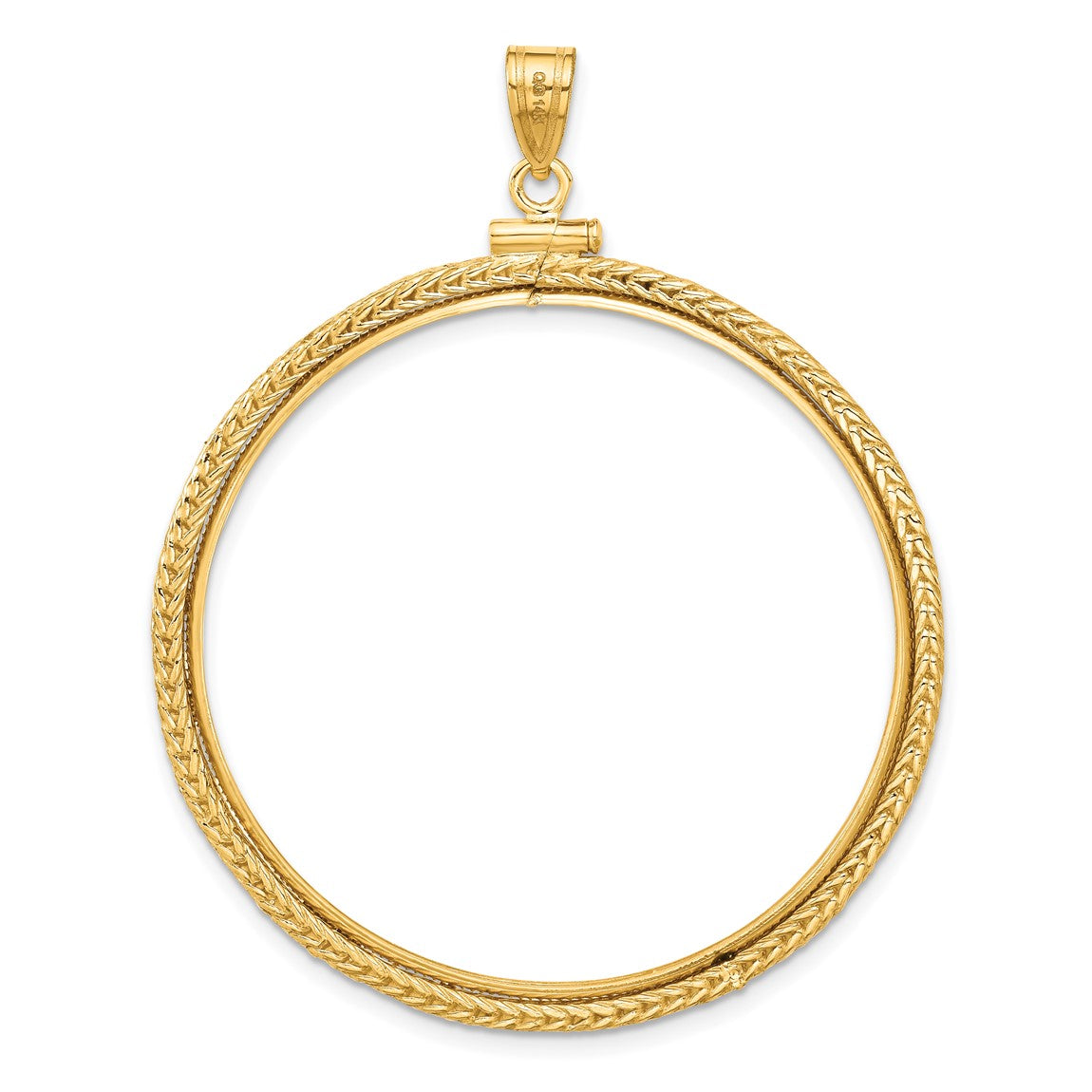 14k Yellow Gold Foxtail Chain Screw Top 39.5mm Coin Bezel Pendant - Fits 4 Ducat