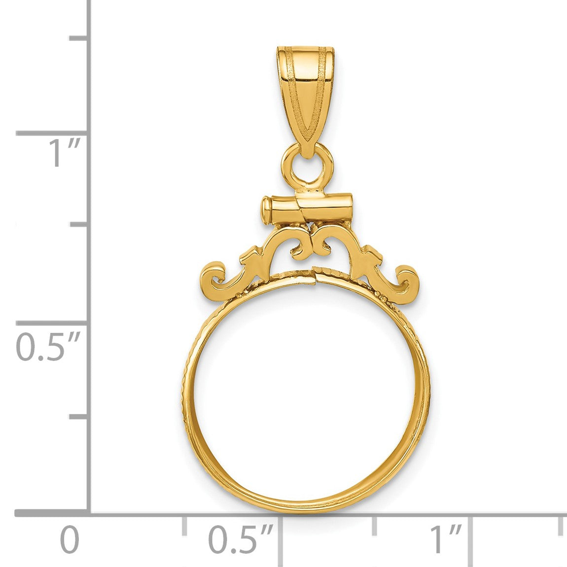 14k Yellow Gold French Scroll Screw Top 16mm Coin Bezel Pendant - Fits 1/10 oz Maple Leaf, Maple Leaf, and Other Coins