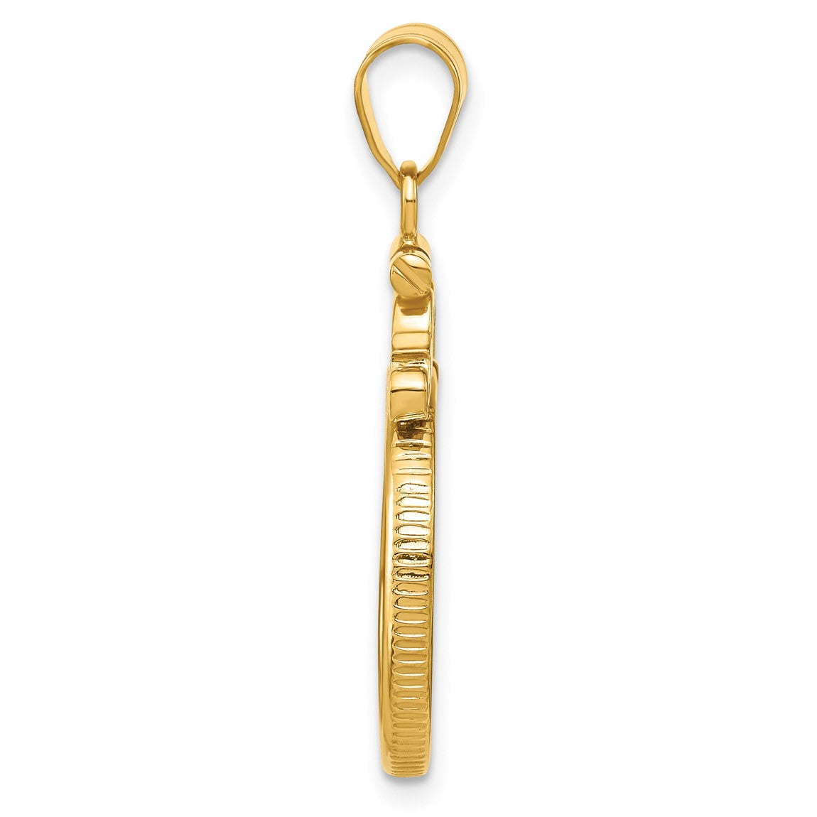 14k Yellow Gold French Scroll Screw Top 17.8mm Coin Bezel Pendant - Fits US $2.50 Liberty and Other Coins