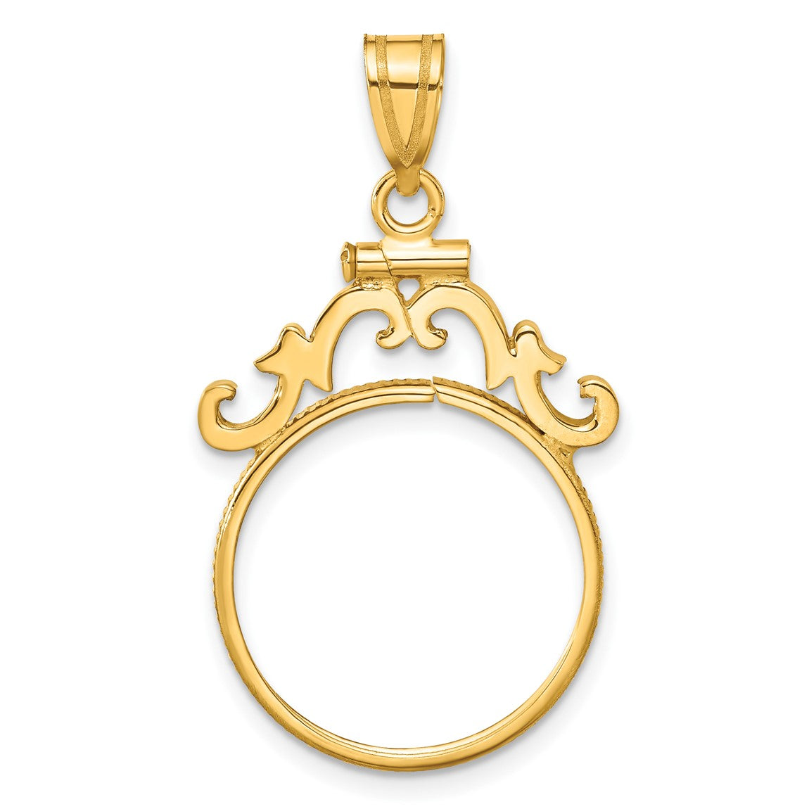 14k Yellow Gold French Scroll Screw Top 18mm Coin Bezel Pendant - Fits 1/10 oz Cat