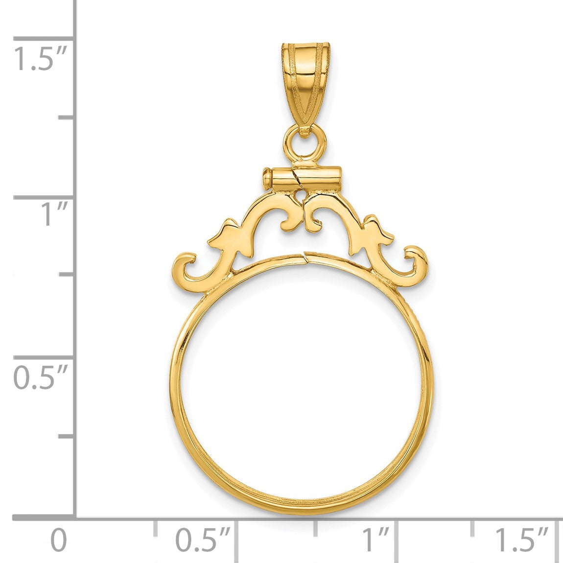 14k Yellow Gold French Scroll Screw Top 20.2mm Coin Bezel Pendant - Fits 1/4 oz Maple Leaf