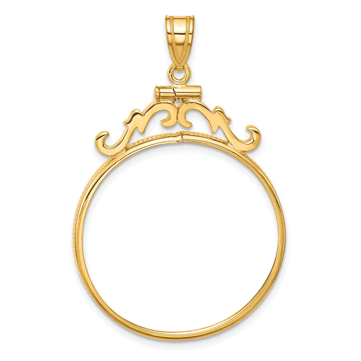 14k Yellow Gold French Scroll Screw Top 27.5mm Coin Bezel Pendant - Fits 20 Pesos