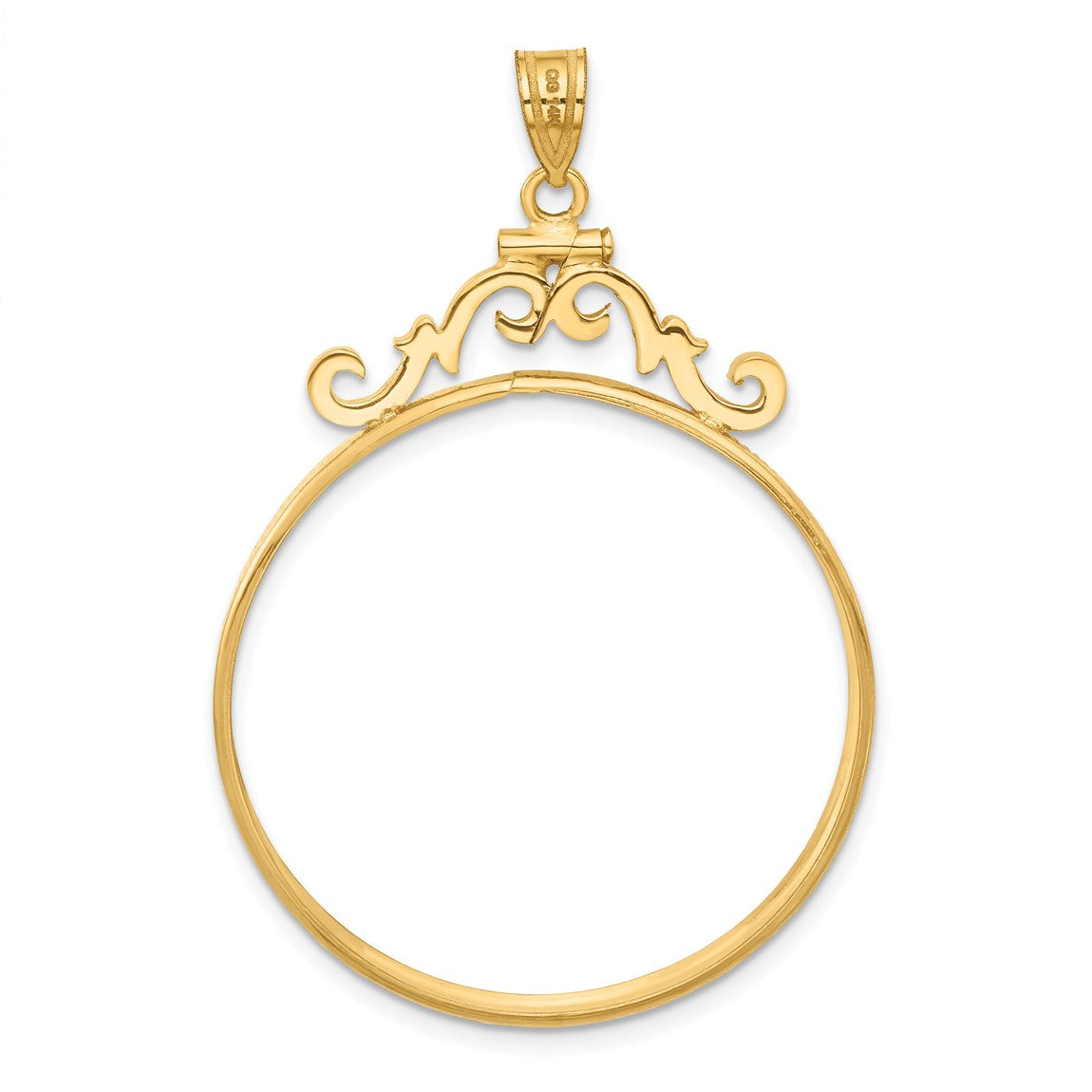 14k Yellow Gold French Scroll Screw Top 34.2mm Coin Bezel Pendant - Fits US $20 Liberty and US $20 St. Gaudens