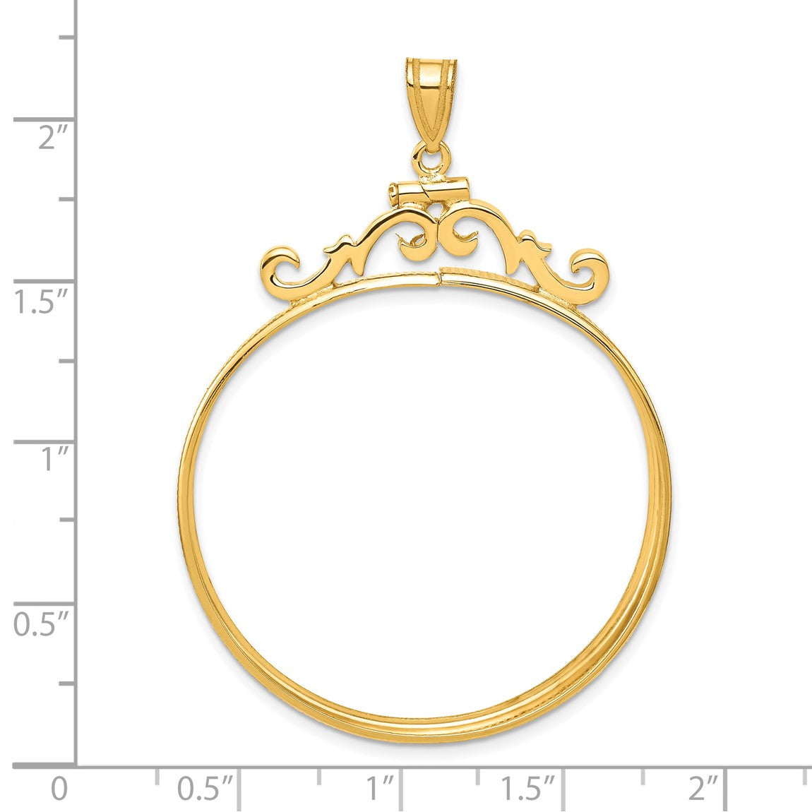 14k Yellow Gold French Scroll Screw Top 37mm Coin Bezel Pendant - Fits 50 Pesos and Centenario