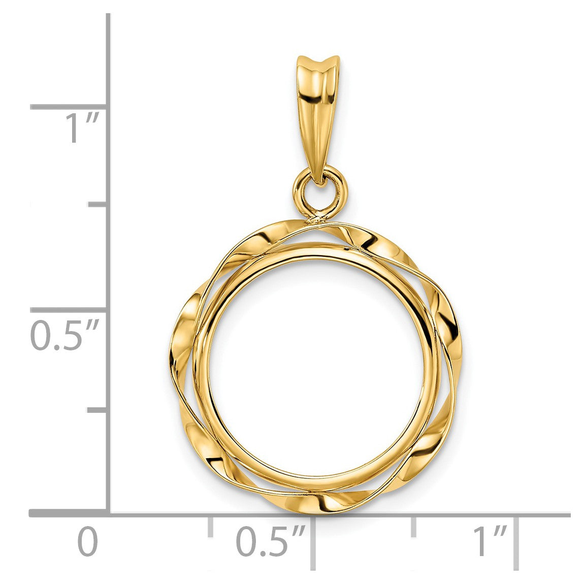 14k Yellow Gold Hand Twisted Ribbon 15mm Prong Coin Bezel Pendant - Fits US $1 Type 2