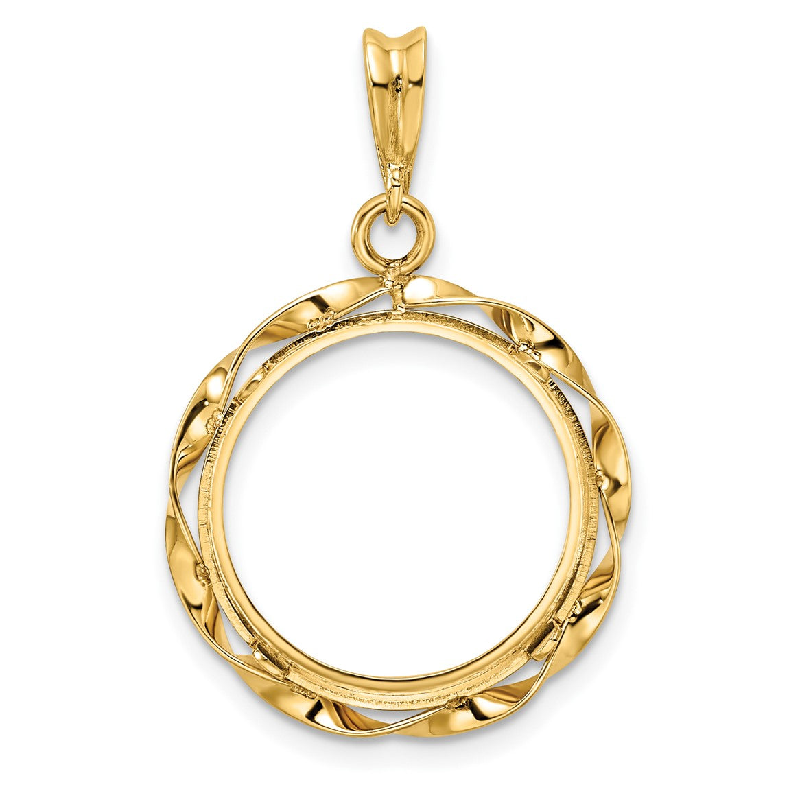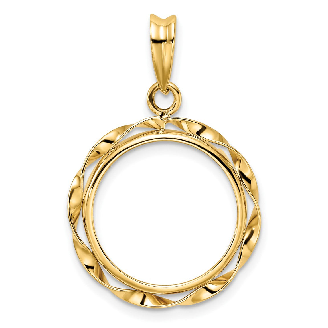 14k Yellow Gold Hand Twisted Ribbon 16.5mm Prong Coin Bezel Pendant - Fits 1/10 oz American Eagle and 1/10 oz Krugerrand