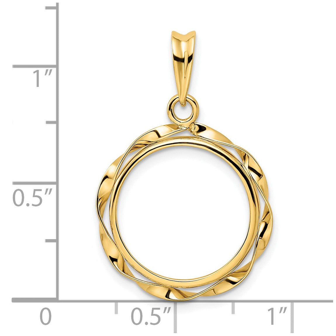 14k Yellow Gold Hand Twisted Ribbon 16mm Prong Coin Bezel Pendant - Fits 1/10 oz Maple Leaf, Maple Leaf, and Other Coins