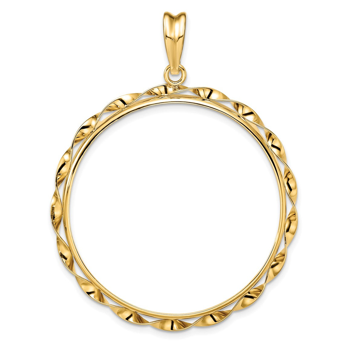 14k Yellow Gold Hand Twisted Ribbon 34.2mm Prong Coin Bezel Pendant - Fits US $20 Liberty and US $20 St. Gaudens