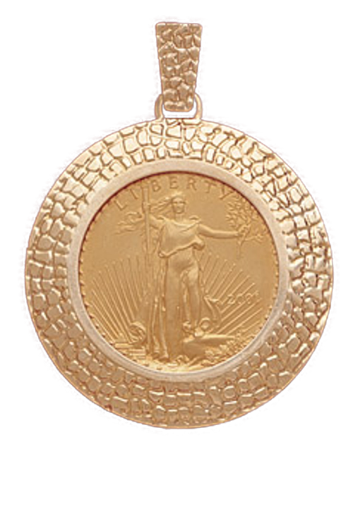 14K Yellow Gold NUGGET FRAME Bezel Pendant 32.7 mm