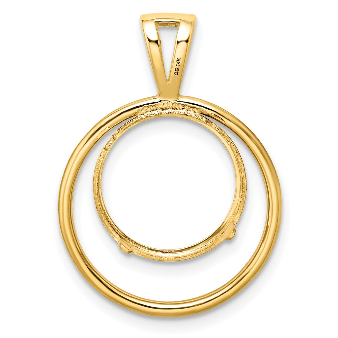 14k Yellow Gold Offset Double Circle 13mm Prong Coin Bezel Pendant - Fits 2 Pesos and US $1