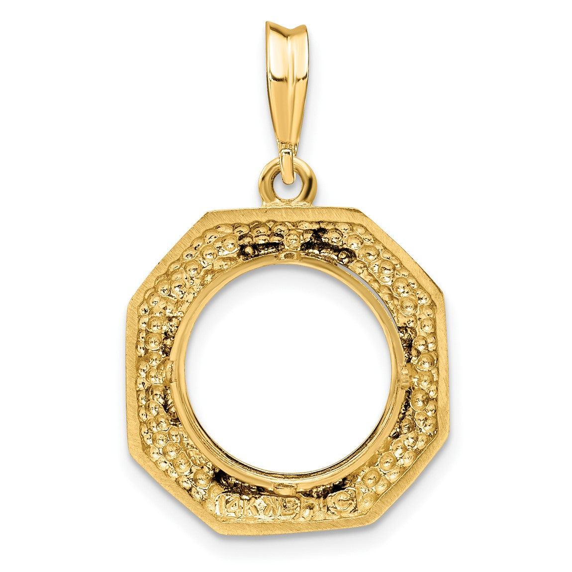 14k Yellow Gold Polished 13mm Octagonal Prong Coin Bezel Pendant - Fits 2 Pesos and US $1