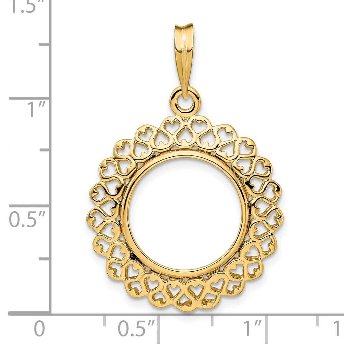14k Yellow Gold Polished 15mm Heart Filigree Prong Coin Bezel Pendant - Fits US $1 Type 2