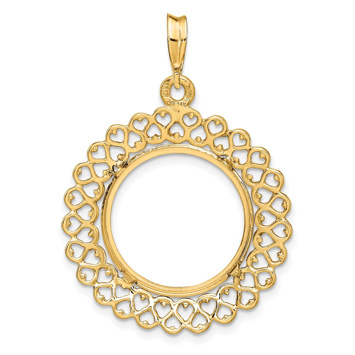 14k Yellow Gold Polished 17.8mm Heart Filigree Prong Coin Bezel Pendant - Fits US $2.50 Liberty and Other Coins