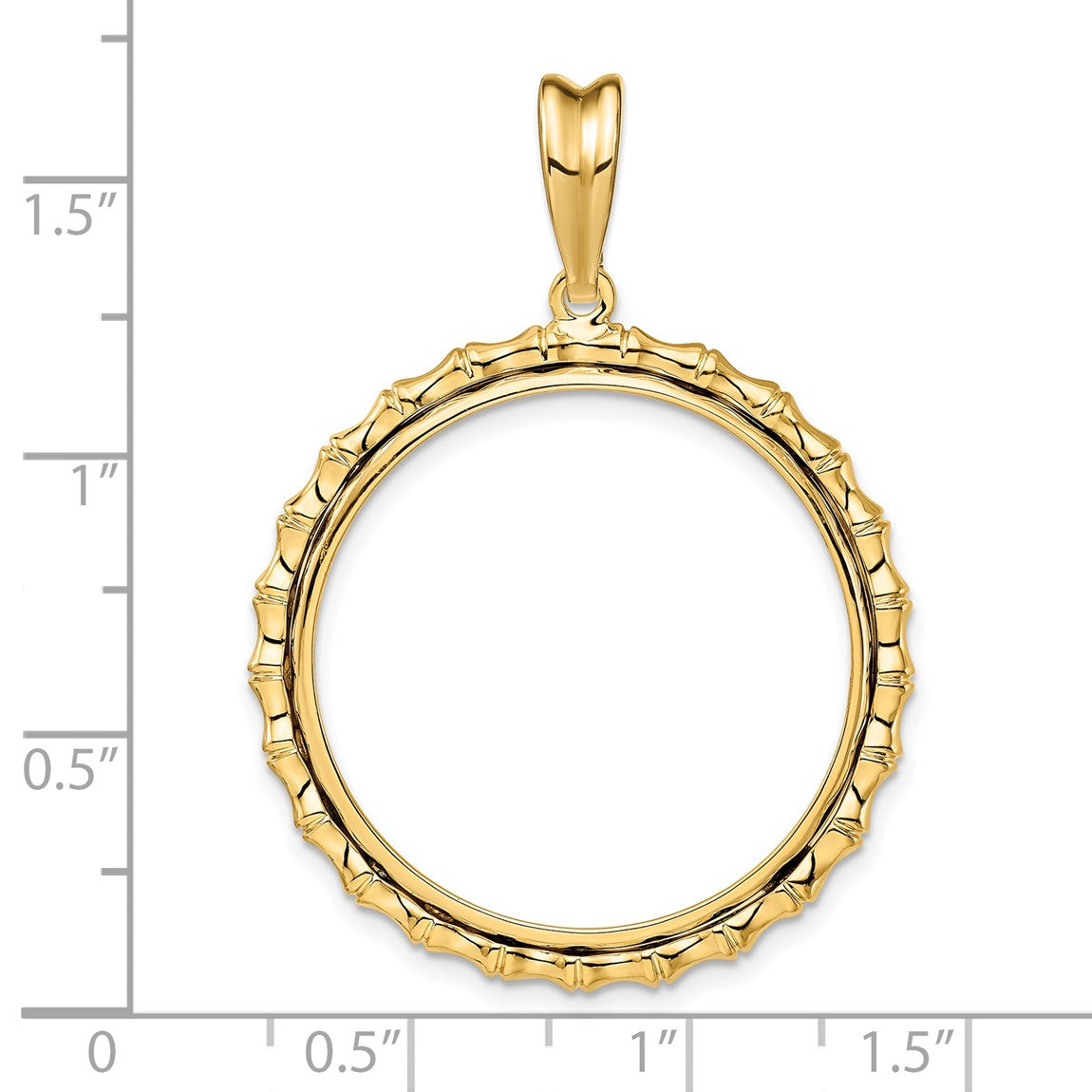 14k Yellow Gold Polished 27mm Bamboo Prong Coin Bezel Pendant - Fits 1/2 oz American Eagle, US $10 Liberty, and Other Coins